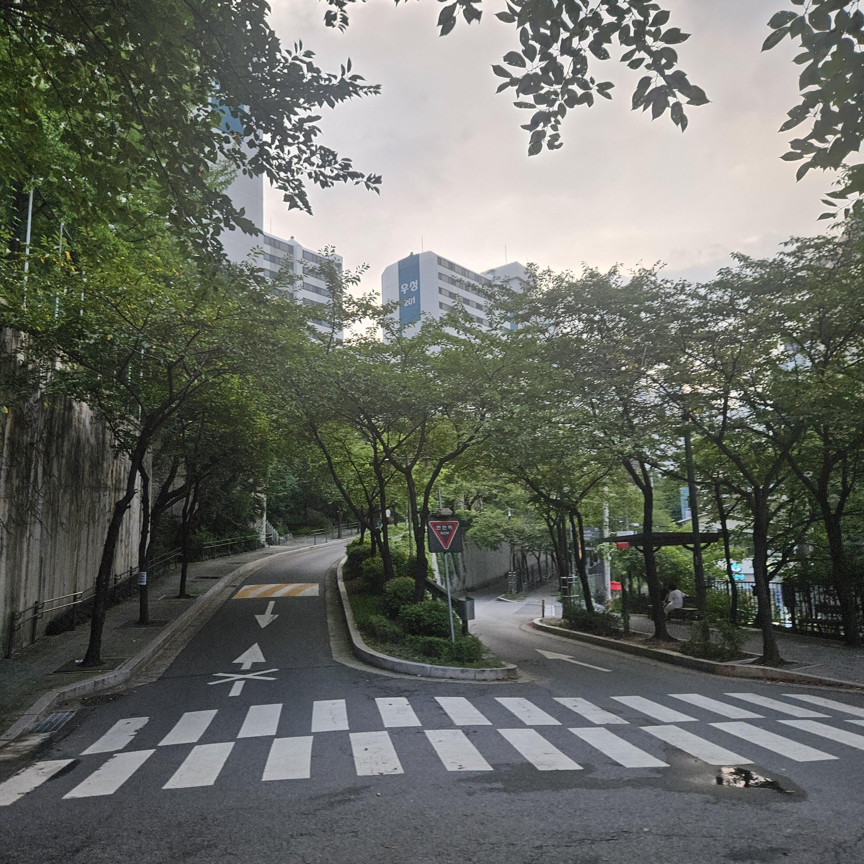 술집거리를 지나면 아파트 입구가 나오면서 언덕이 시작됩니다.